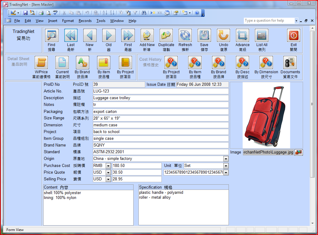 - maintain product details, dimension, content, specification, payment terms, order minimum
